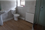 Ce palier dessert une grande salle de bains principale avec douche, lavabo et WC. Un WC séparé complète l'étage.